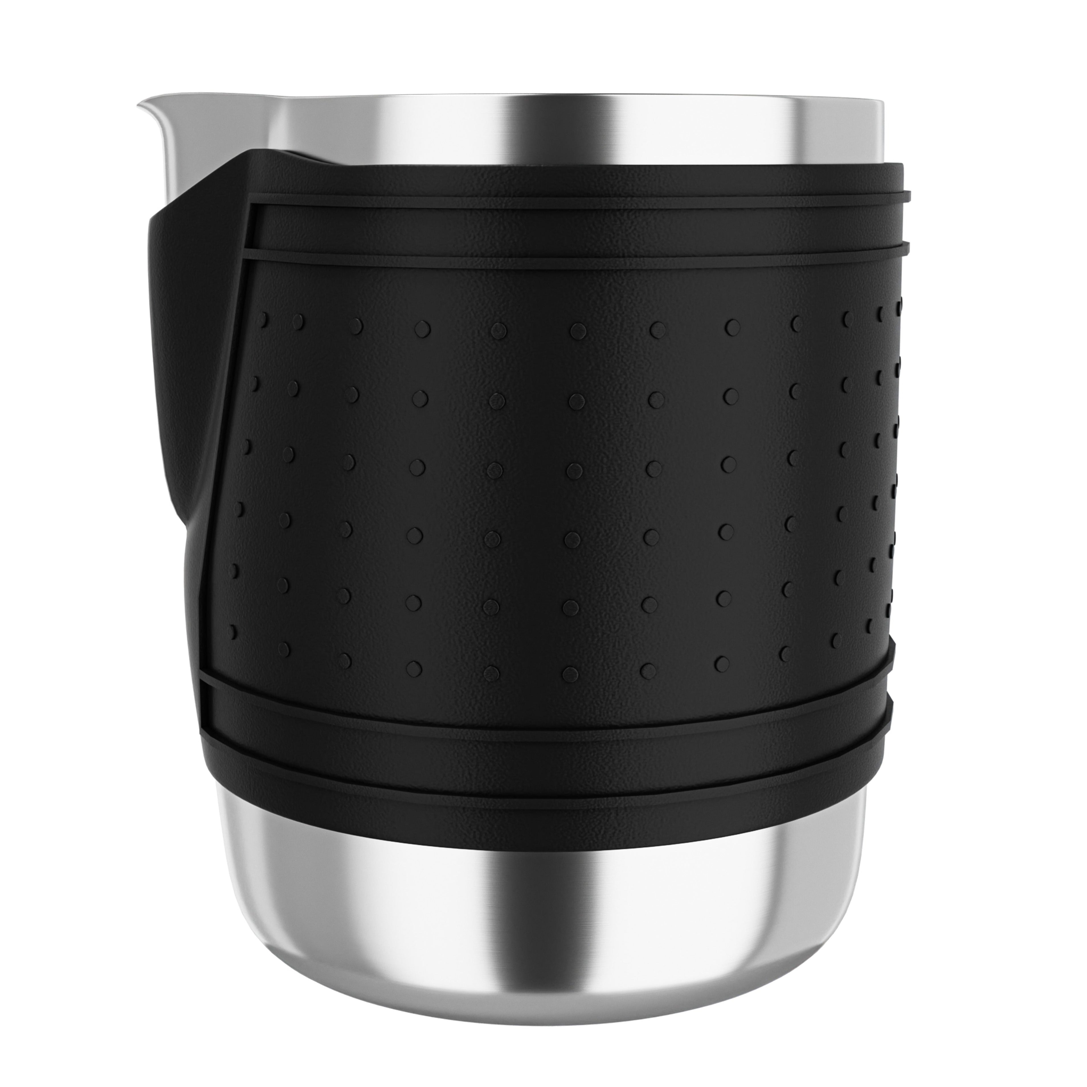 Kanden er perfekt til latte art og skumning af mælk med præcision takket være den ergonomiske tud og håndtag. Med en kapacitet på 350 ml har du nok mælk til flere kopper, og silikone omslaget gør den ideel til både hjemmebrug og professionelle baristaer.